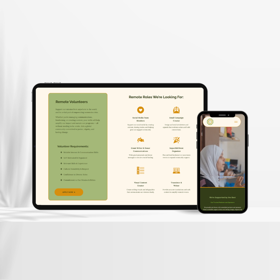 We designed a professional, compassionate Squarespace website with intuitive navigation and a clean layout. Strategic storytelling and impactful visuals highlight real communities and the NGO’s work in mental health, education, and emergency aid. Clear calls-to-action guide visitors to donate, volunteer, or partner, making engagement simple and meaningful. The site is fully responsive, ensuring accessibility across all devices.